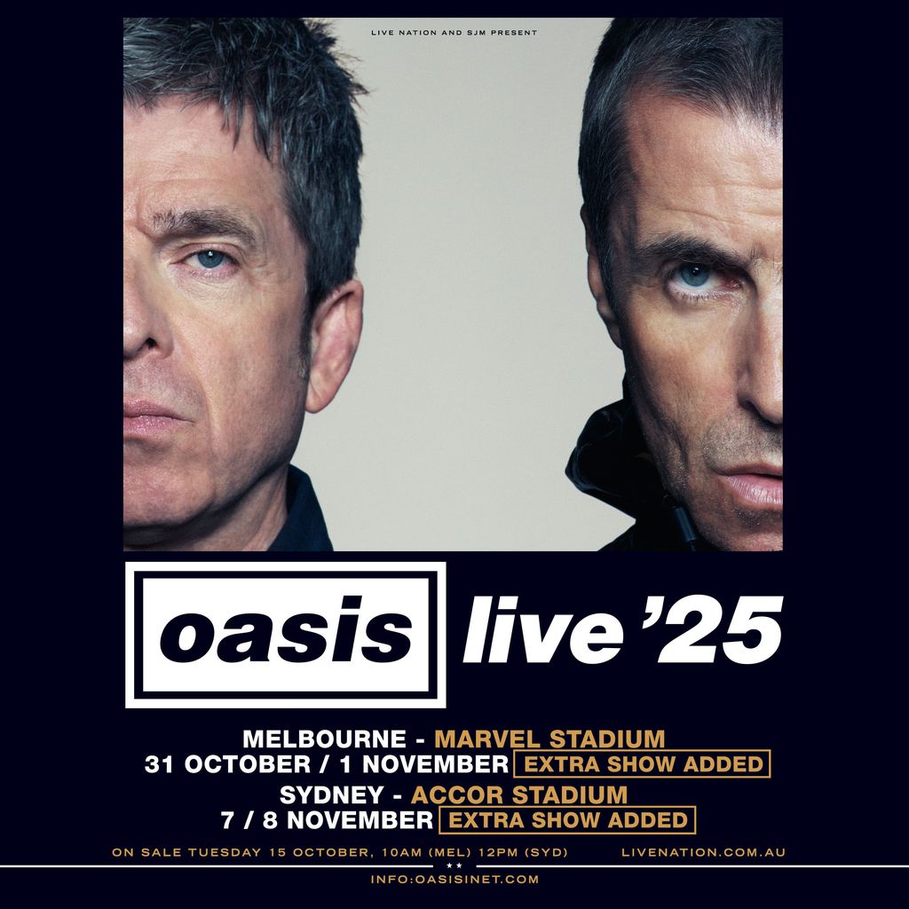 Following the announcement of Oasis’ long-awaited return down under, the band announce today two additional shows as part of the Australian leg of their OASIS LIVE ’25 world tour, which is produced by Live Nation. The new dates will see Oasis play two nights each at stadiums in Sydney and Melbourne.