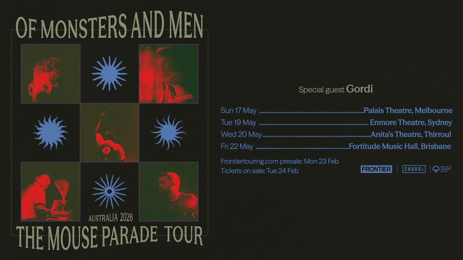 Chugg Entertainment and Frontier Touring are excited to welcome back Icelandic favourites, Of Monsters and Men, as the globally-recognised group return to Australia for The Mouse Parade Tour in May 2026. Marking over six years since their last visit to Australia, the band also celebrate their first full-length project in six years, All is Love and Pain in the Mouse Parade.
