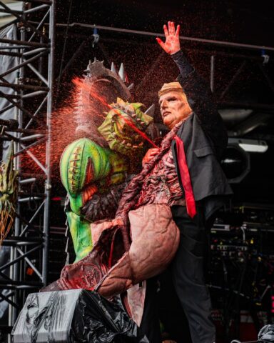 That youthful curiosity carries us well into GWAR’s set, which is every bit as gloriously gory and unhinged as you’d expect. It’s the first time Australia’s seeing Blöthar the Berserker (aka Michael Bishop) in the frontman role, taking over for the late, great Oderus Urungus (aka Dave Brockie) with vigorous aplomb that does expert justice to the larger-than-life showmanship that Oderus was renowned for. Across a wonderfully theatrical 45 minutes, GWAR douse their crowd in gallons of fake blood from several slain effigies (including one of notorious felon and sex pest Donald Trump, to rapturous applause) all the while shredding out some genuinely fantastic ‘80s-style thrash metal.