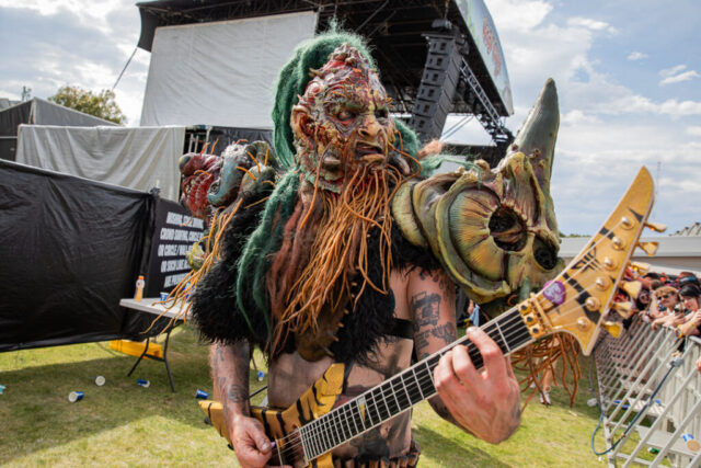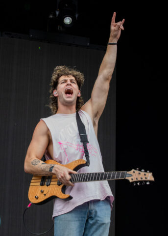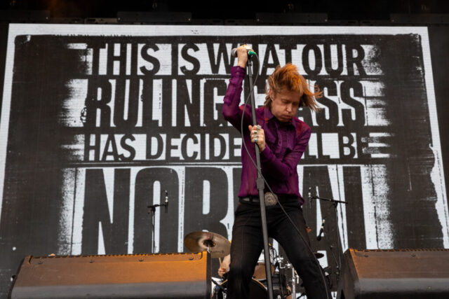 Snapping us back to the present day, Wargasm’s biting electronicore is fresh and inspired, ardently holding off a 3pm slump. They occupy such a fascinating space: there’s an Iggy Pop-esque arrogance to the way leading duo Milkie Way and Sam Matlock compose themselves, but equally so do they nail the frantic buoyancy of hyperpop and snarling bite of riot grrrl. We only plan to catch the first few of their songs but wind up fully locked in for the whole 40-minute set, just desperate to see where every next beat will take them.