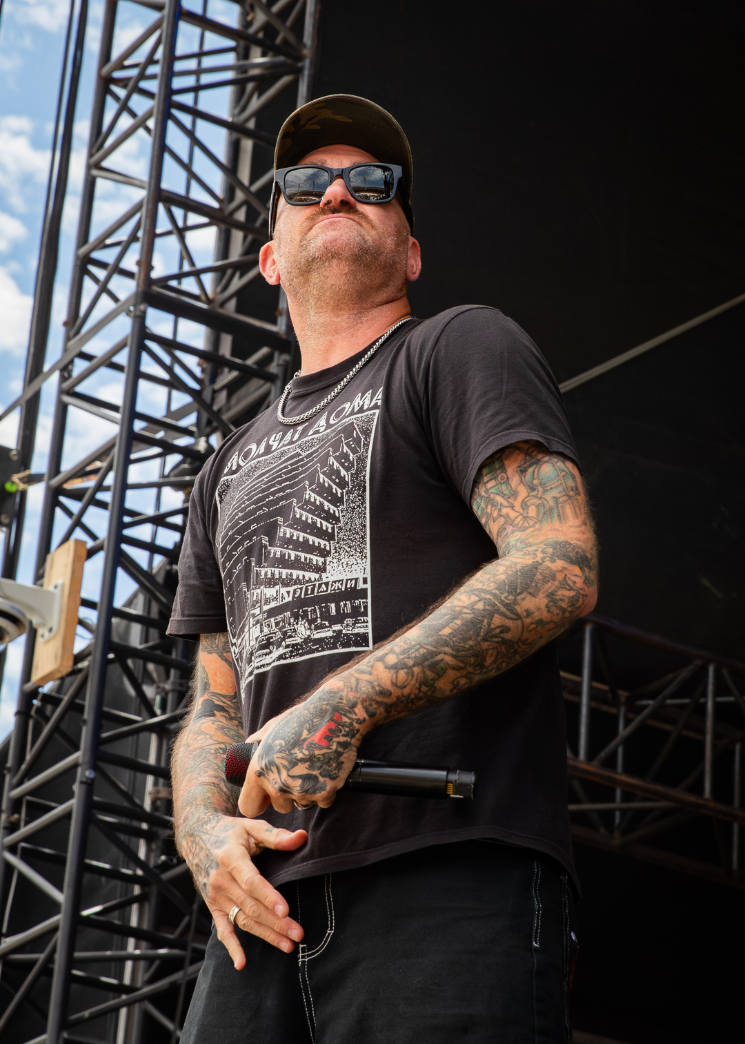 The set leaves us fired up and primed to hit the streets with picket signs in tow – but there’s still a few hours of this little ol’ rock festival to go, so in effort to liven up the mood once more, Goldfinger break out their grooviest, most radical bites of sunkissed ska-punk. Their set was loose and good-natured, making this million-dollar setup feel like a DIY jaunt at a skatepark. It’s like tonal whiplash when we ditch the back half of their set for Machine Head, with the latter’s whiskey-soaked thrash metal belting at full throttle. Despite the absence of riff-lord Reece Scruggs, the band sound judiciously full and gnarly; frontman Robb Flynn always has such a gripping presence onstage, and here he keeps the crowd firmly in his palm with career-defining fury on cuts like ‘Locust’ and ‘Davidian’.
