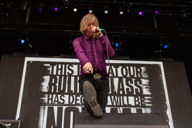 As keen as we are to catch Kublai Khan on stage four, it’s at this point that we realise we’re pushing 30 and our shitty knees start to give us grief – so we sideline ourselves for (the most incredible) pulled beef tacos and fresh watermelon juice, then stumble back to stage one for a glimpse of Garbage. Their performance is anything but: Shirley Manson boldly commands our attention with her rich and impassioned tenor, tearing through classics like ‘Stupid Girl’ and ‘#1 Crush’ – plus a wickedly captivating cover of Depeche Mode’s ‘Personal Jesus’ – with her wholly unique brand of grit and dynamism. The mood takes a jarring turn, though, when Manson spots a beach ball in the crowd and crashes right the fuck out, delivering a batty rant that toes the line between hilarious and terrifying. “I would love to send my crew over to fucking mess you up,” she snarls viciously at [checks notes] some random dude holding a beach ball.