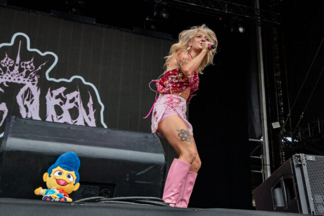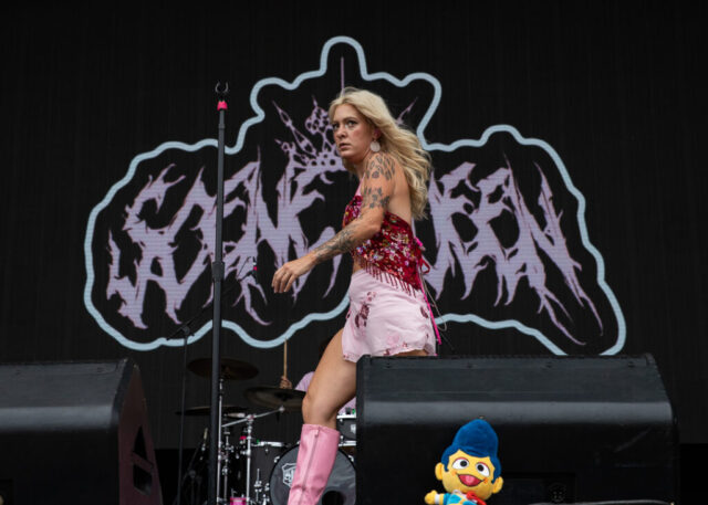 Our first pits of the day come courtesy of New York’s bimbocore trailblazer Scene Queen. Fiercely feminist and ruthlessly fun, her genre-bending bangers (which oscillate wildly from clubby pop beats to djenty breakdowns) ensure we start the day in a good mood. She is so perfectly suited for this stage: beyond her inimitable skills on full display, she boldly takes aim at the very scene she inhabits – one still regrettably dominated by regressive cishet men – with barbed quips at shitty dudes whose egos far outweigh their talent, assume her fame must hinge on the back of a man, or take advantage of their own underage fans. See: anthemic set-closer ‘18+’, which very unsubtly digs at a certain band poised to take this very stage later today (rhymes with Wall Thyme Blow).